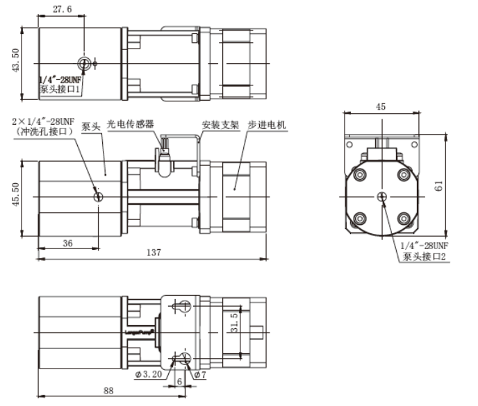 可選沖洗功能,以實現(xiàn)易結(jié)晶溶液的長壽命傳輸??膳渲秒姍C編碼器,以實現(xiàn)電機位置的實時監(jiān)控??膳渲弥每刂破?,以縮短集成系統(tǒng)開發(fā)周期。