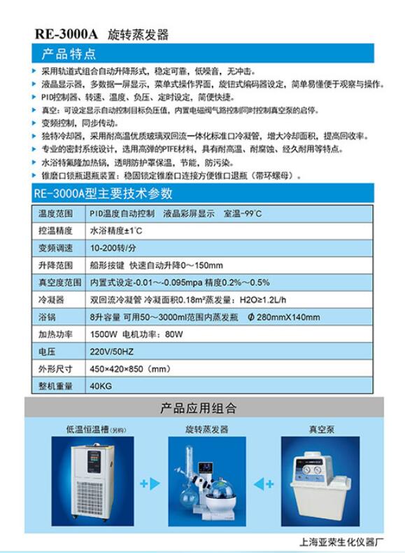 亞榮RE-3000A旋轉(zhuǎn)蒸發(fā)儀(金葉)