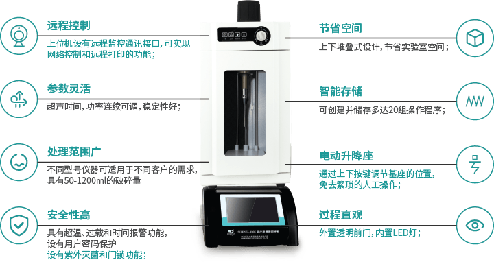 • 處理范圍廣  不同型號儀器可適用于不同客戶的需求,具有50-1200ml的破碎量