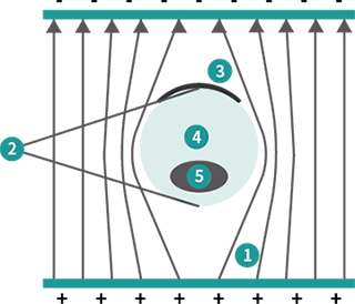 1 細胞膜近似絕緣體,細胞附近電轉(zhuǎn)液中電流扭曲。