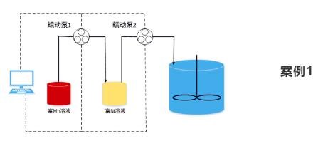 客戶要求Ni離子溶液的流量需要隨著時(shí)間線性遞減,而Mn離子溶液的流量需要隨著時(shí)間線性遞增。那么客戶可以選擇用兩臺(tái)智能泵,輸送Ni離子的泵用勻減速模塊,而Mn離子的泵用勻加速模塊。兩臺(tái)泵同時(shí)啟動(dòng),就可以制備出滿足要求的全濃度梯度結(jié)構(gòu)的鋰電池材料。