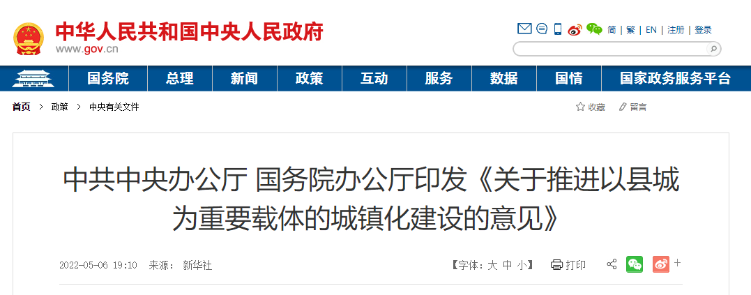 5月6日,中共中央辦公廳、國(guó)務(wù)院辦公廳印發(fā)了《關(guān)于推進(jìn)以縣城為重要載體的城鎮(zhèn)化建設(shè)的意見》,并發(fā)出通知,要求各地區(qū)各部門結(jié)合實(shí)際認(rèn)真貫徹落實(shí)。